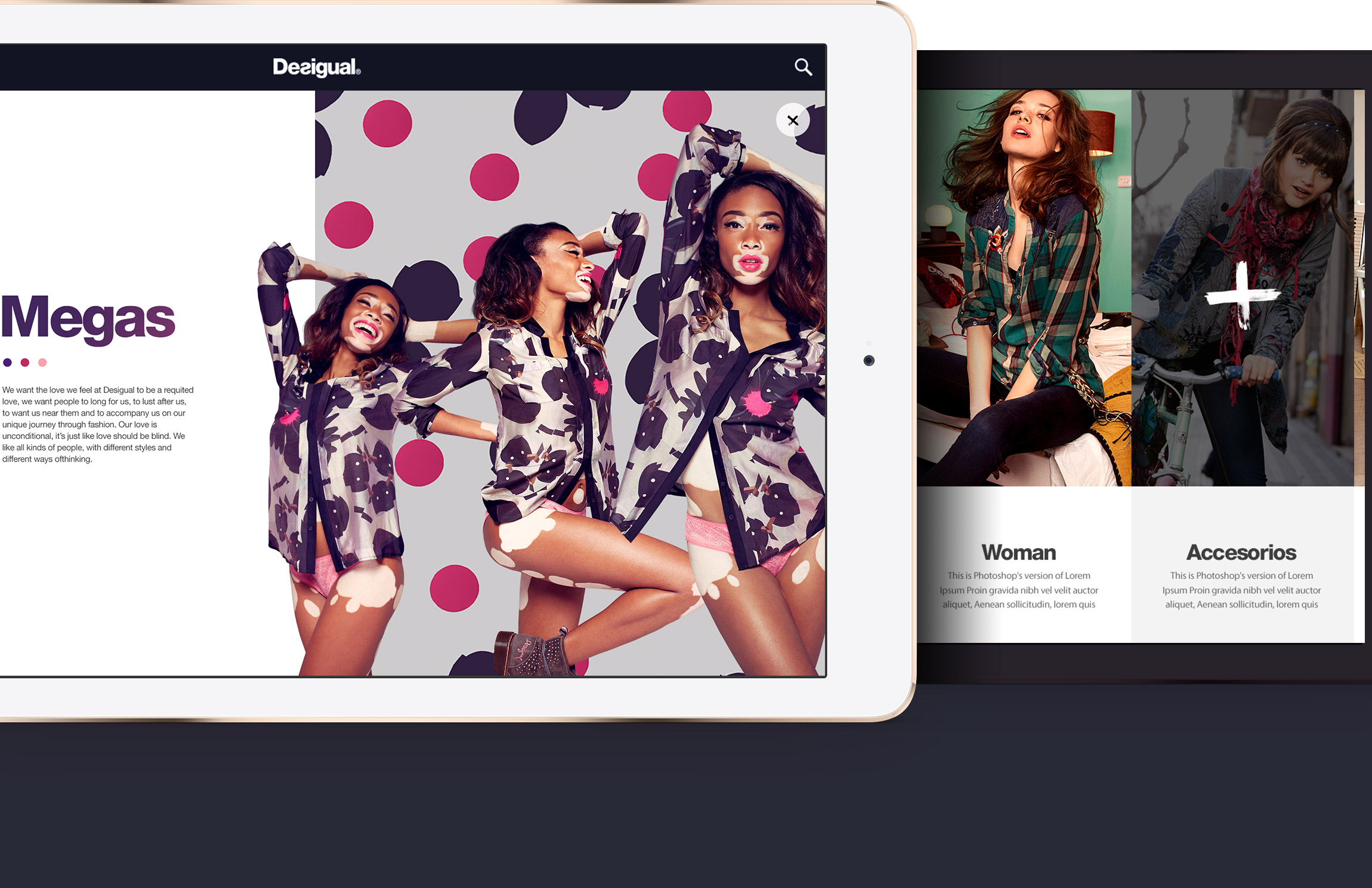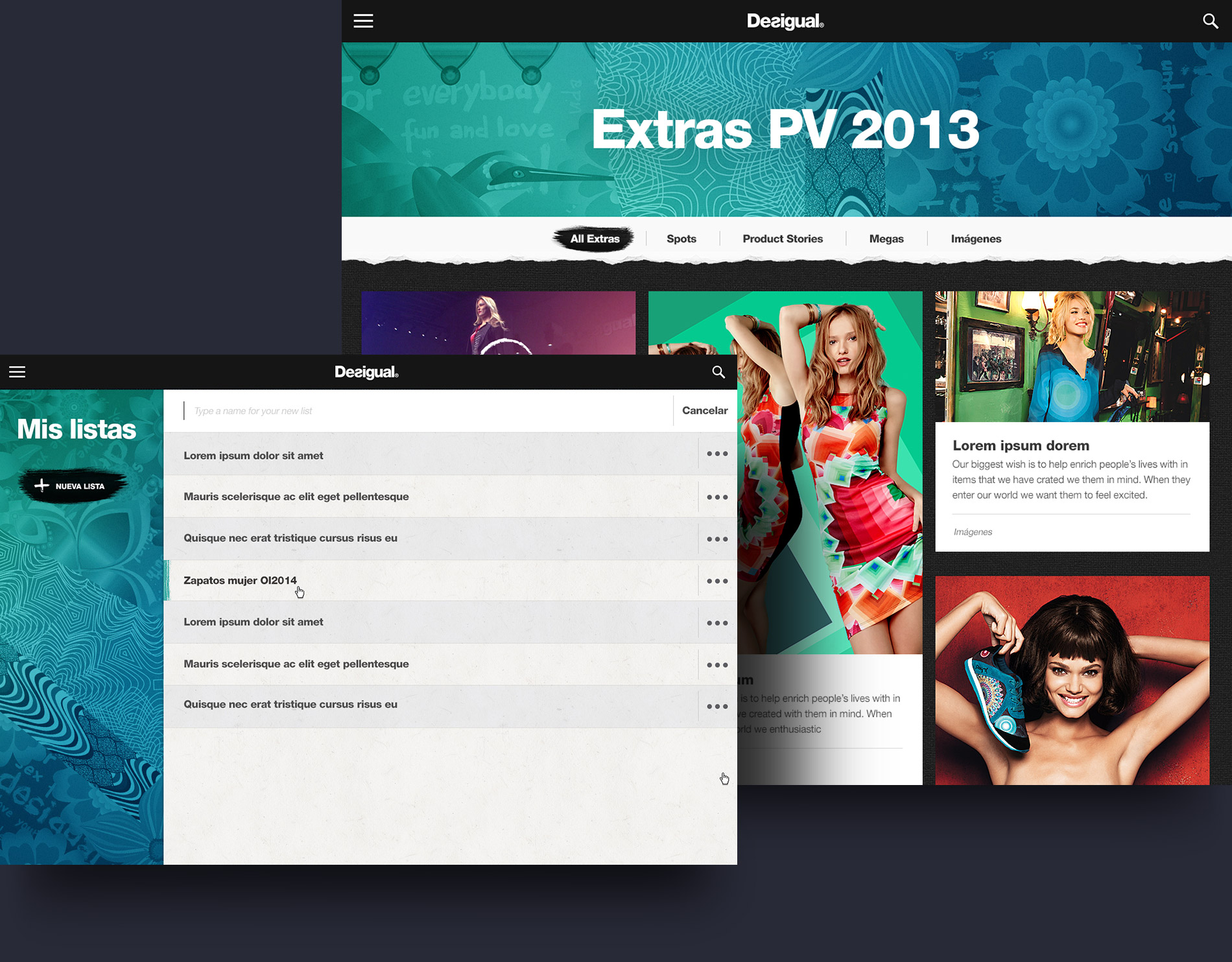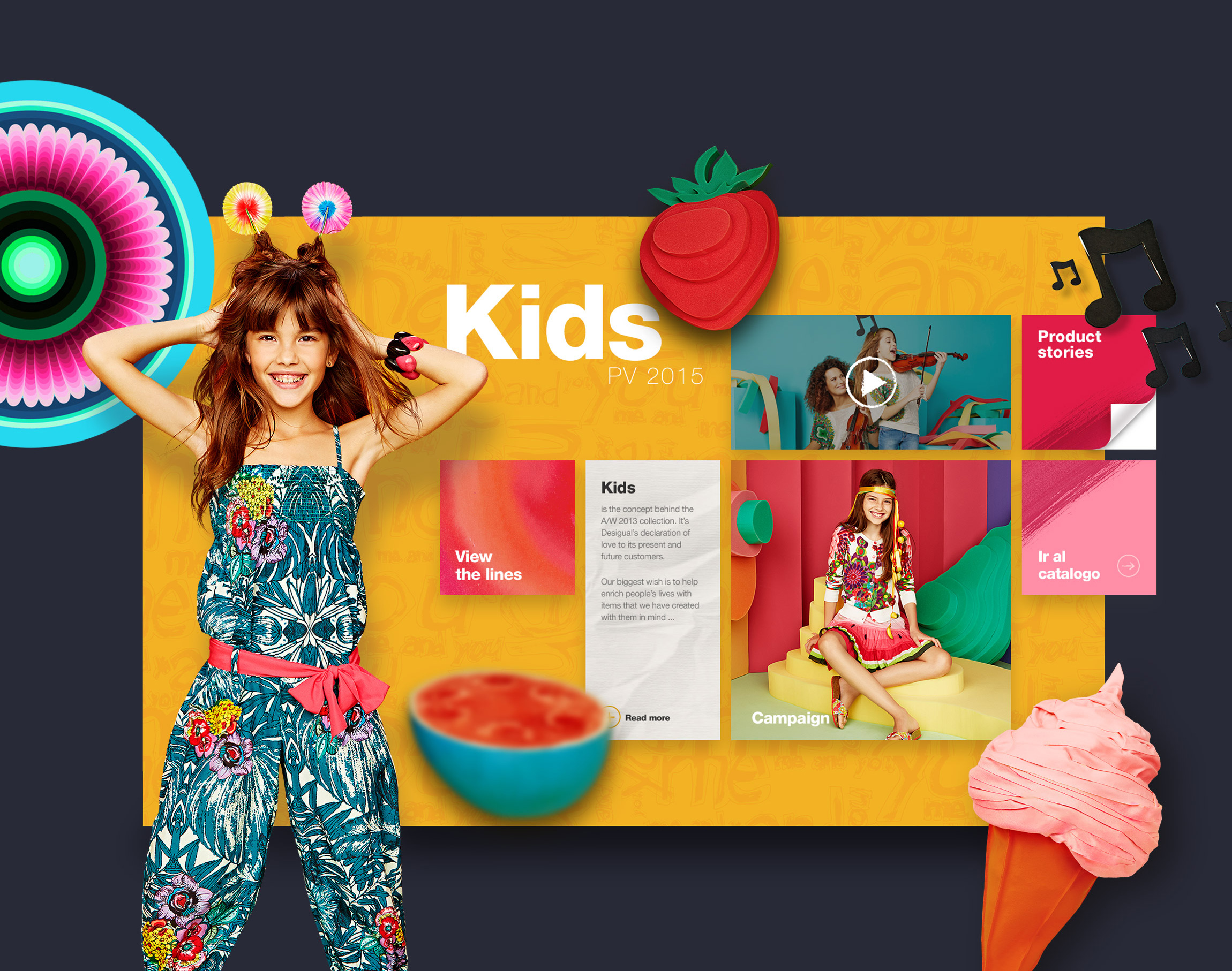 The platform is manageable and has a twofold goal: presenting new collections while giving access to product details and categories, and creating an application from a distinct creative, recreational approach which reinforces brand positioning through its visual approach and interactions, the creation of extra contents and the inclusion of elements adding playability to the browsing experience.