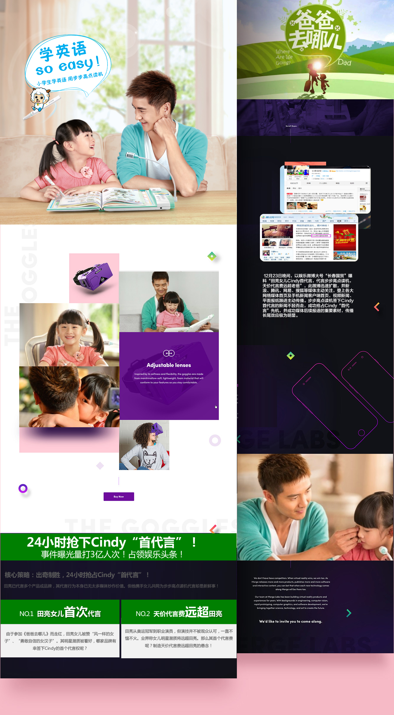 《爸爸去哪儿》节目热播带火五位爸爸与五位萌娃。各品牌商择机而动,纷纷邀请五位萌娃为品牌代言。其中,包括步步高点读机、蒙牛未来星等品牌同时签下田亮女儿Cindy。而随着《爸爸去哪儿》第一季的结束,各大代言品牌商势必掀起传播风暴。在奥信传媒的策划下,成功帮助步步高点读机抢得先机,24小时内拿下“首代言”传播制高点,在众多Cindy代言品牌商中抢得了传播战役先机,成为当年的娱乐头条,以及经典营销案例。